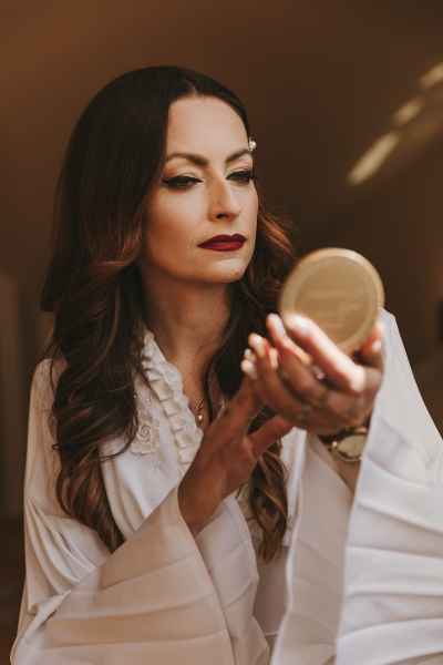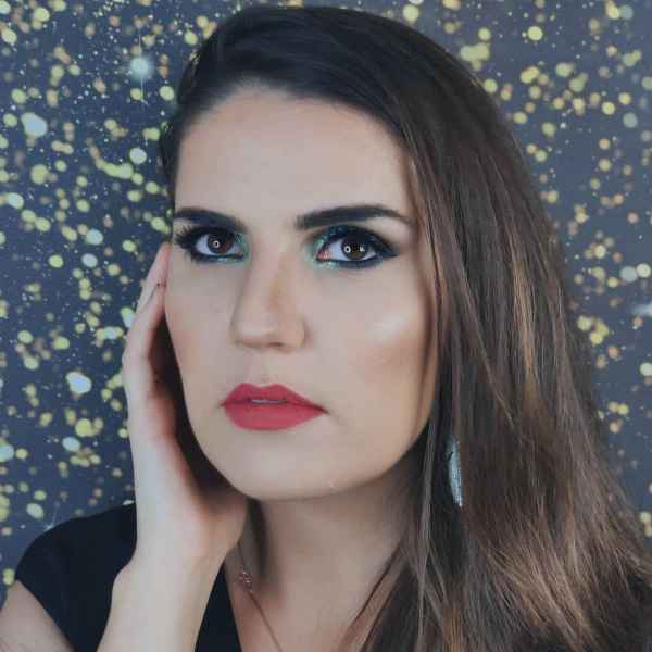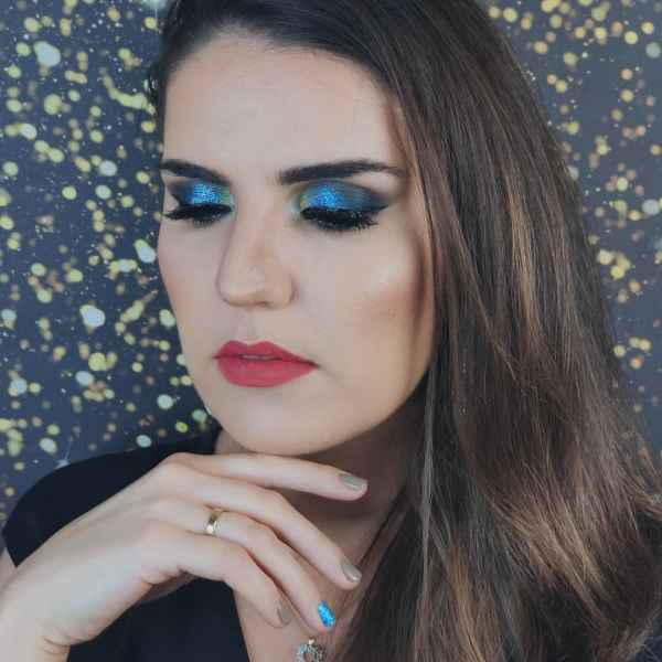 Błyszczący makijaż w odcieniu butelkowej zieleni