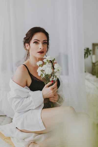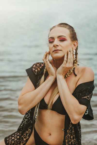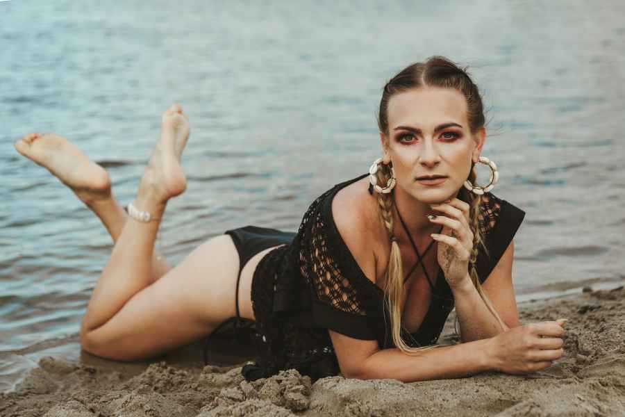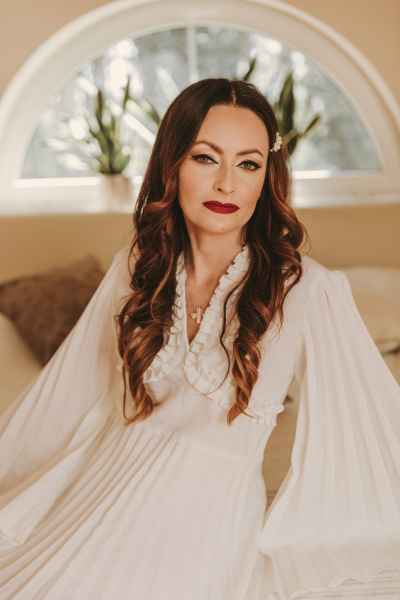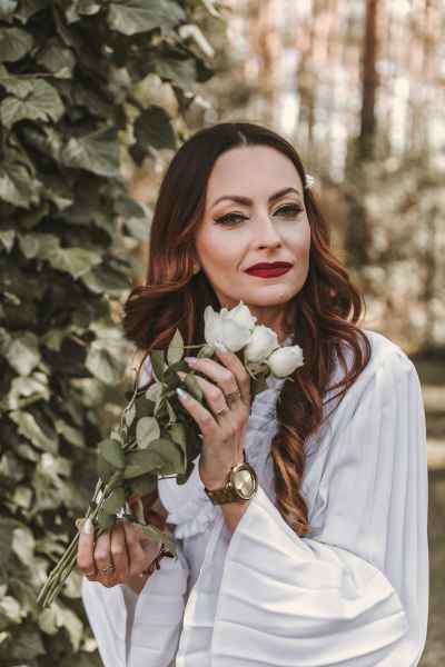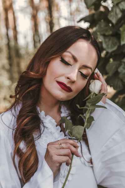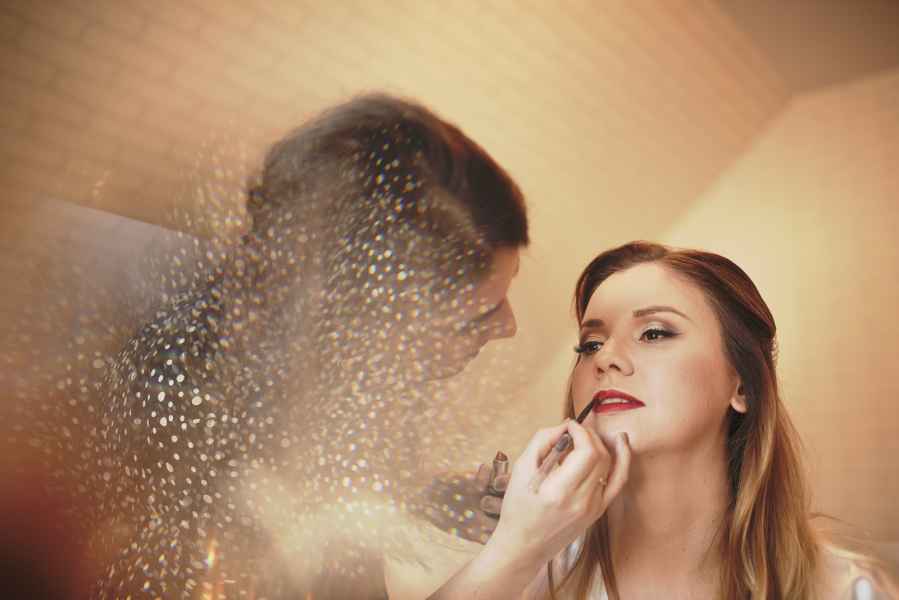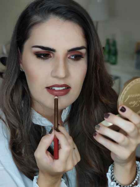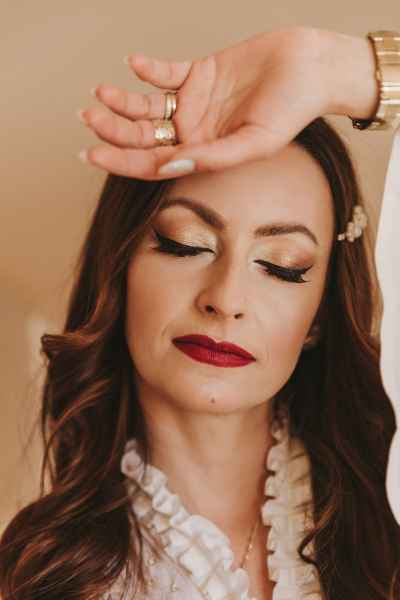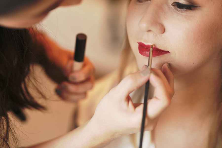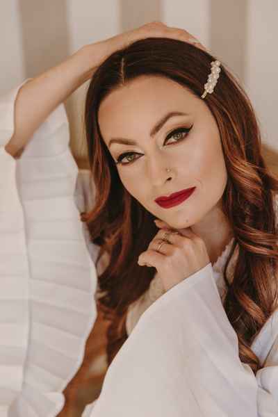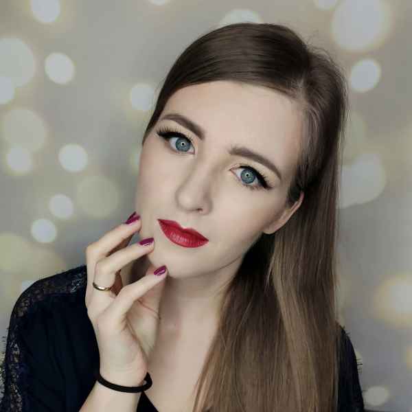 Klasyczny makijaż z precyzyjną kreską i czerwonymi ustami