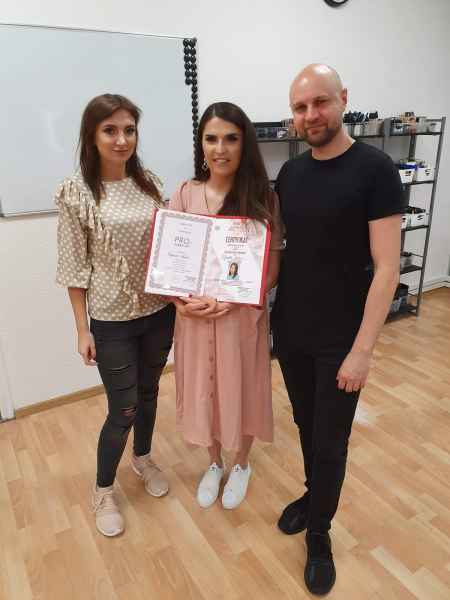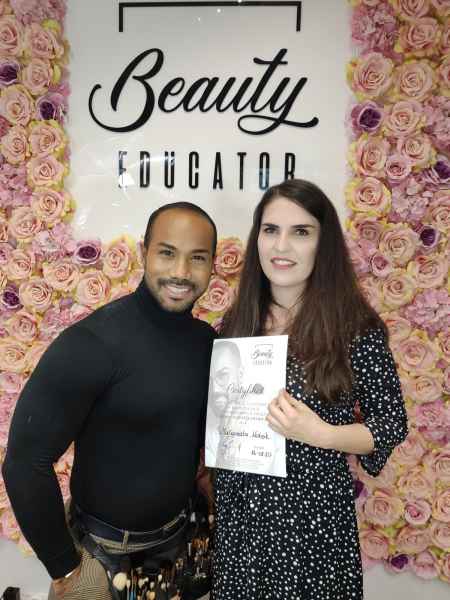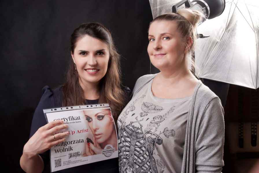 Zakończenie z sukcesem 3 tygodniowego kursu dla wizażystów w PRO Make Up Acadmy. Na zdjęciu jestem z wykładowcami i właścicielami akademii Danielem Sobieśniewskim i Karoliną Matraszek.